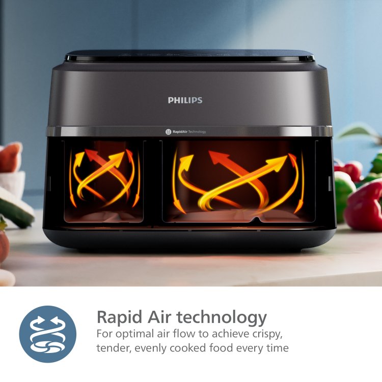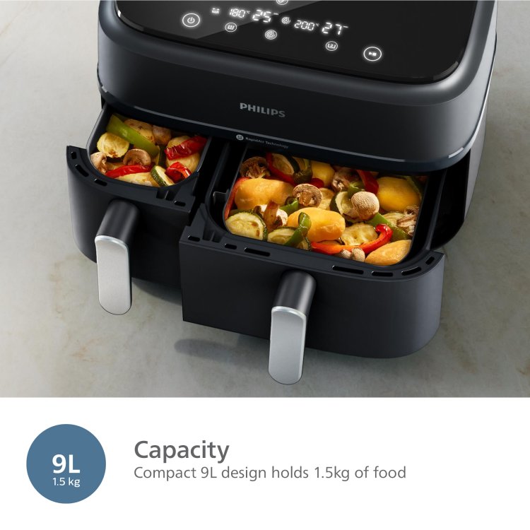 Discover a healthier way to enjoy your favorite dishes with the Philips 3000 Series Airfryer. With its innovative "starfish" design, this Airfryer ensures that food is evenly cooked with minimal oil, resulting in crispy, golden-brown perfection every time. Not just for frying, it also excels at grilling, roasting, baking, and reheating, making it a versatile addition to any kitchen. The digital touch screen offers 7 presets, taking the guesswork out of cooking, while the keep-warm function ensures your meal is hot and ready when you are. With a generous 4.1L capacity, it’s perfect for cooking up to four portions at once. Plus, the Philips Kitchen app provides a treasure trove of recipes to inspire your culinary creativity.