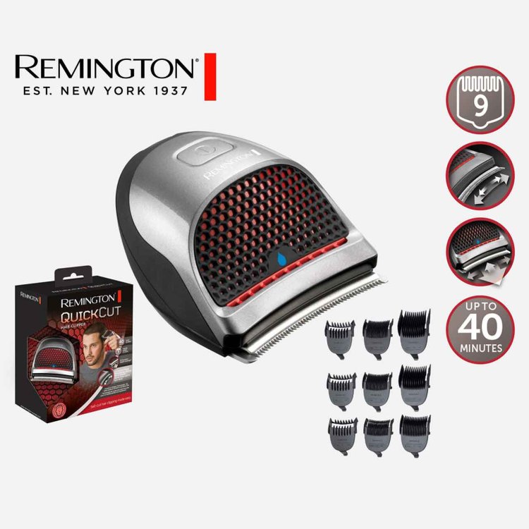 The Remington Quick Cut Hair Clipper is designed for speed, comfort, and convenience. Featuring CurveCut blade technology and 57% greater blade coverage*, it delivers cleaner, more even cuts in record time. Whether you're keeping it short or maintaining your fade, this compact clipper gives you total control from home.