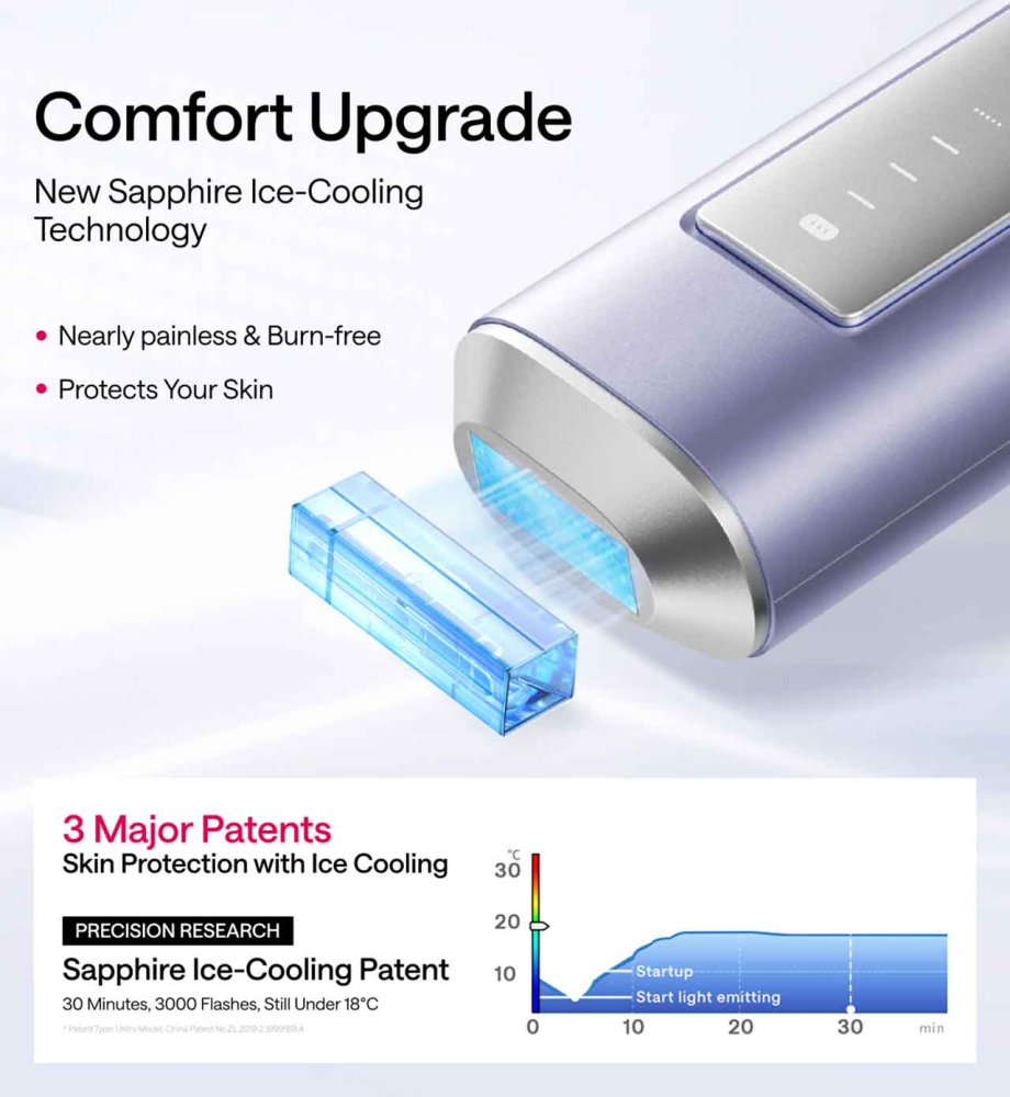 ❄️ Sapphire ice-cooling maintains 18°C for a near painless experience