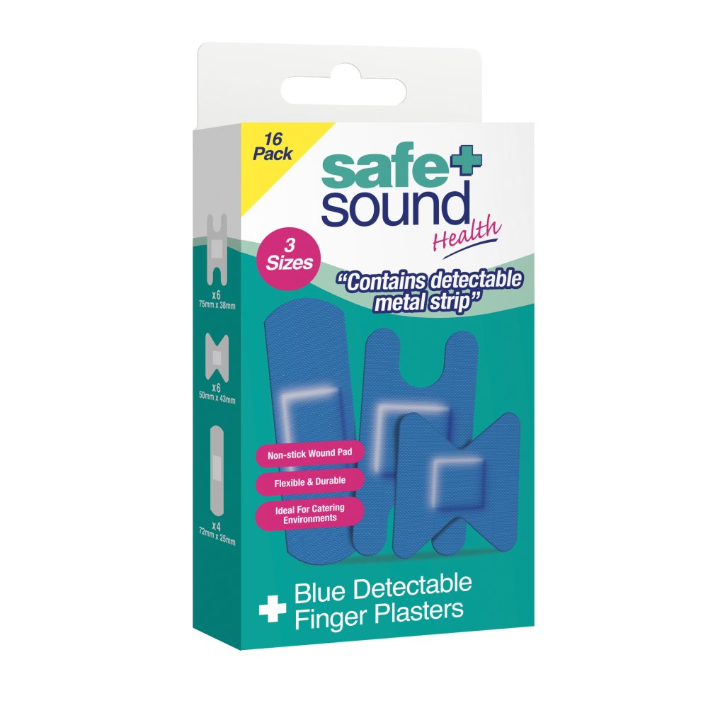 The Safe and Sound Detectible Finger Plasters contain a metal strip behind the wound pad making them metal detectable. The plasters are soft and flexible for your comfort and are highly visually detectable. They are designed specifically for the hand and fingers and are suitable for catring environments.
