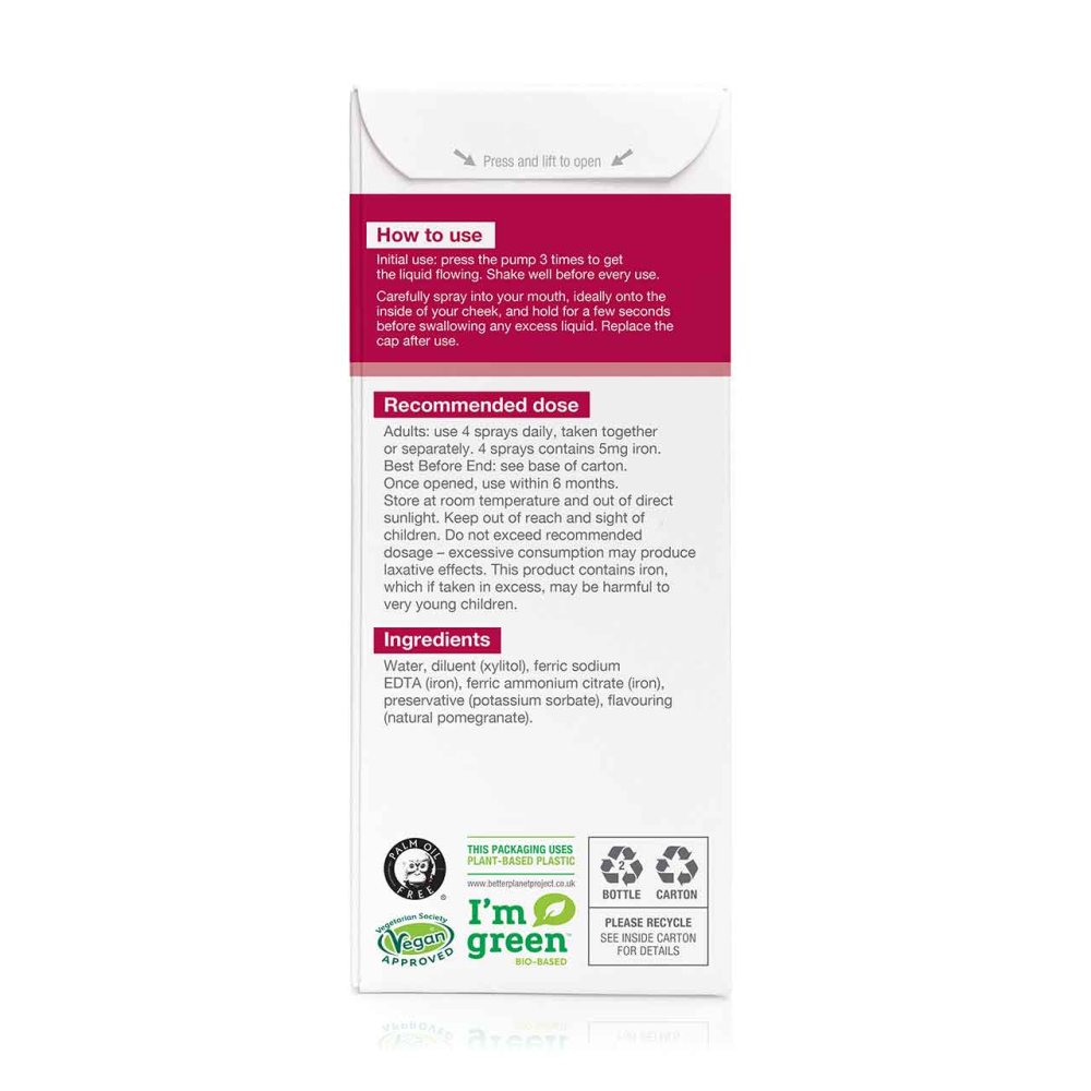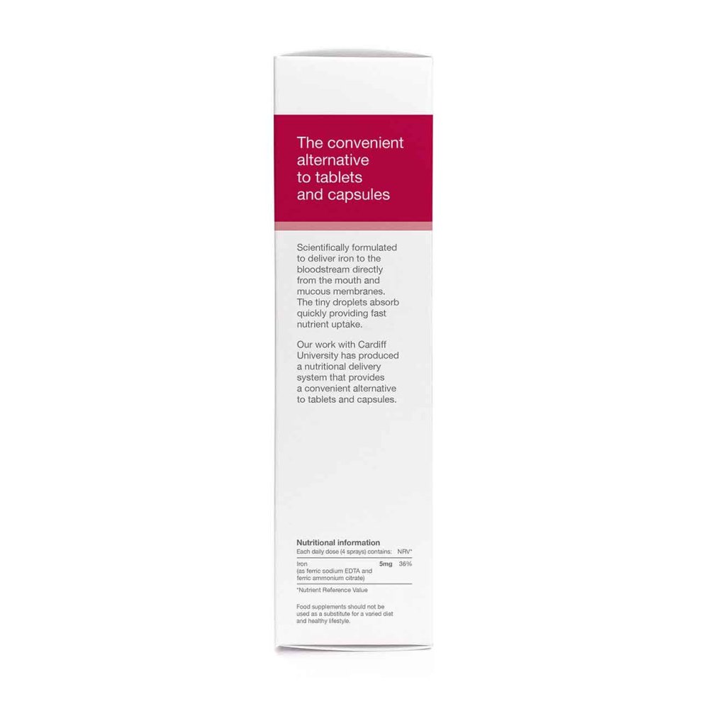 Delivering 5mg of iron per 4 sprays, the Iron 5 Oral Spray is specially formulated to deliver this vital nutrient directly into the mouth. The tiny droplets absorb quickly, providing fast nutrient uptake.
