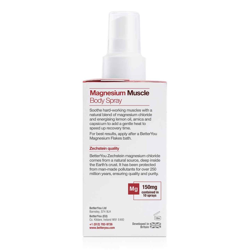 Magnesium Muscle Body Spray is an effective magnesium supplement formulated to soothe hard-working muscles. It contains a natural blend of magnesium chloride and energising lemon oil, arnica and capsicum to add a gentle heat to speed up recovery time.
