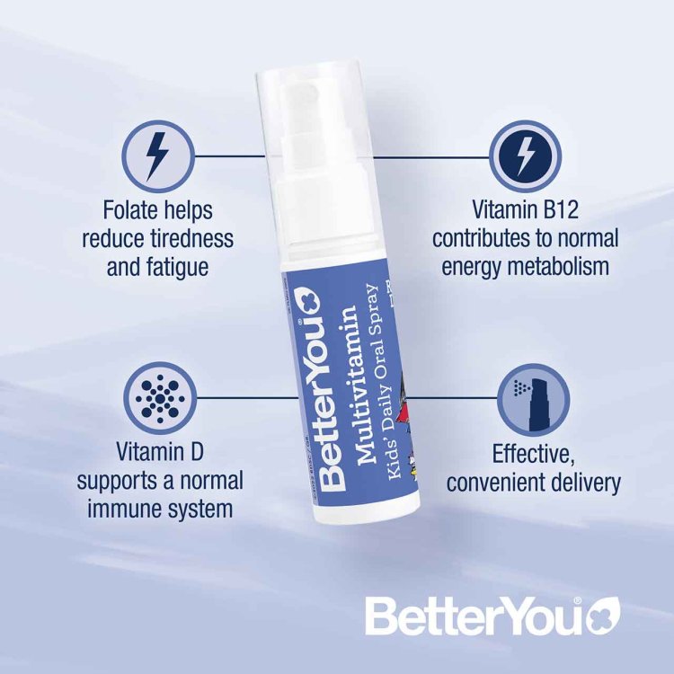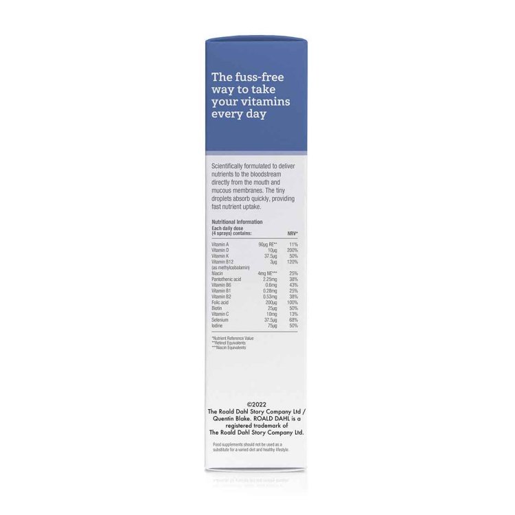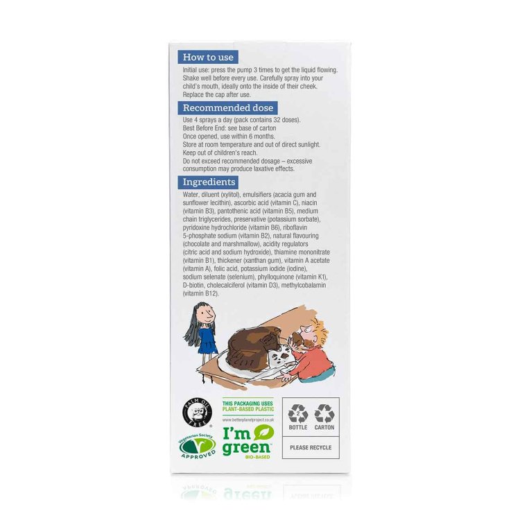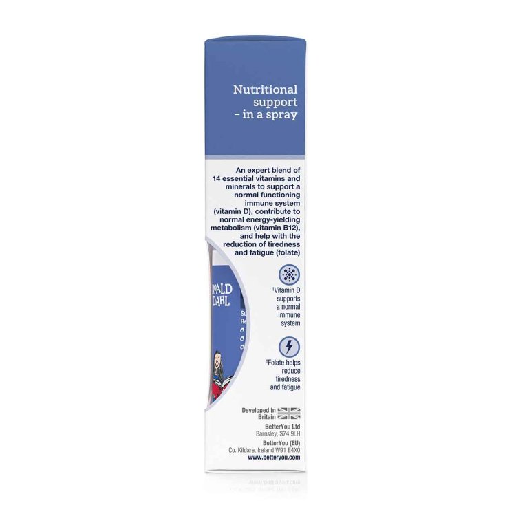 BetterYou Multivitamin Kids Oral Spray is the perfect, fuss-free way to support your child’s health and wellbeing. Packed with 14 essential nutrients, this great-tasting oral spray ensures your little one receives the vitamins they need each day to grow strong and healthy. With packaging inspired by Roald Dahl's Matilda, the playful design makes taking their vitamins a fun experience every day.