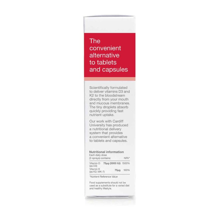 Dosage: 3 sprays delivers 3000IU (75?g (micrograms)) of vitamin D plus 75?g (micrograms) of vitamin K2.