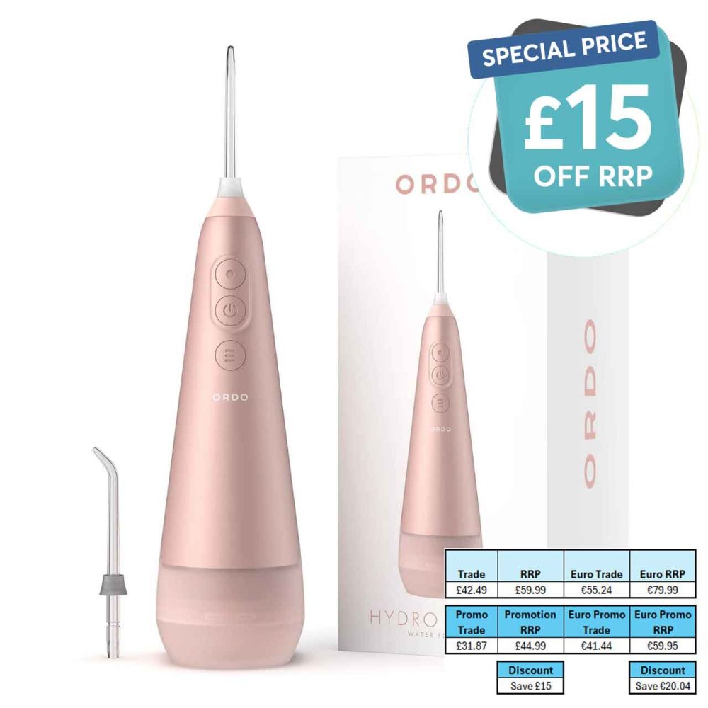 The Ordo Hydro Sonic Water Flosser is designed and approved by dentists to ensure you can achieve the deepest most effective clean at home or on the move.
