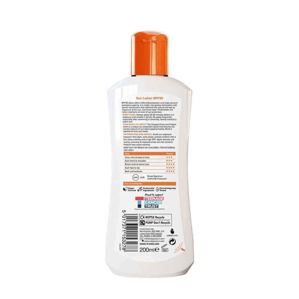 Calypso Sun Lotion offers UVA/UVB protection and helps prevent premature ageing. It is a light, non-greasy and water resistant formula with gentle moisturisers that replenish the natural oils lost by exposure to the sun, wind and water. Photostable, the lotion maintains its level of sun protection.