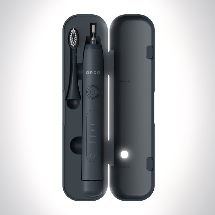 Ordo’s Sonic+ travel case allows you to check the charging status of your brush at a glance.